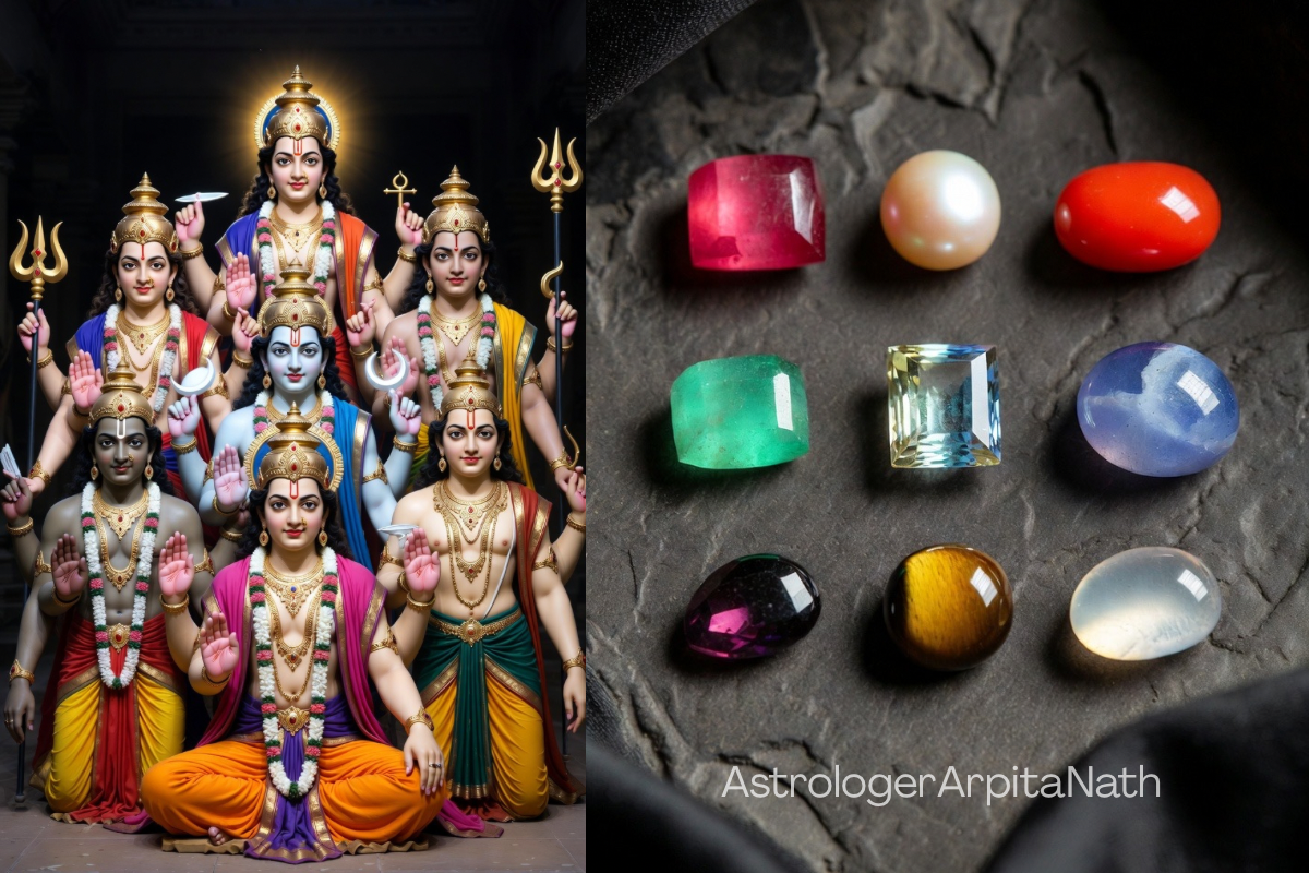 Hello everyone! Have you ever wondered how the stars and planets influence our lives according to ancient Indian traditions? Or why some people wear beautiful jewellry with nine different gems? Today, let’s explore two fascinating concepts from Vedic astrology :