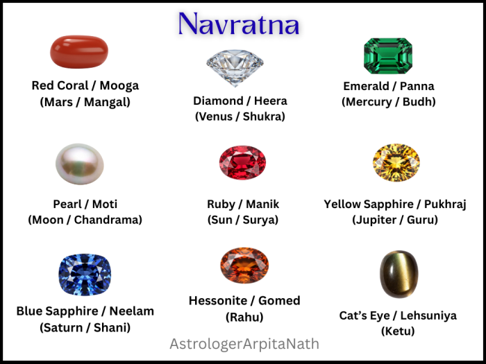 The traditional Navratna gems and their connections: